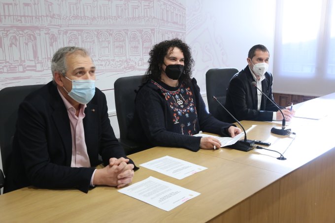 El concejal de Régimen Interior, Movilidad y Deportes, Vicente Canuria, la concejala de Bienestar Social y Juventud, Vera López, junto al gerente de la Sociedad Mixta Aguas de León, Manolo Salas, han presentado esta mañana, en rueda de prensa el programa de ‘Agua, Salud y Empleo’ dirigido a mejorar la vida de las personas y fomentar la igualdad de oportunidades. La iniciativa es fruto del diálogo en la mesa del Pacto Social por la solidaridad, el empleo y la reconstrucción verde de Aguas de León.